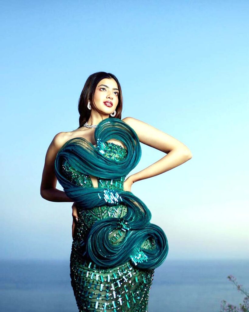 शैम्पेन क्रिस्टल गाउन में वह जैसे रोशनी की परछाई बन जाती हैं, नाज़ुक बीडवर्क और फेदर डिटेलिंग उनकी लक्ज़री पसंद को परिभाषित करती है। वहीं एमरल्ड-ग्रीन स्कल्प्टेड ड्रेस उनके निडर फैशन स्टेटमेंट की गवाही देती है। संरचना और प्रवाह का साहसी संगम उनके व्यक्तित्व की तरह ही मजबूत और आकर्षक है। तेज़ लाल से लेकर गहरे हरे रंगों तक, काशिका सिर्फ कपड़े नहीं पहनतीं, उन्हें जीवन देती हैं। हर पोज़, हर गाउन एक ऐसी स्त्री की कहानी कहता है जो जानती है कि सादगी ही सबसे बड़ा ग्लैमर है — और यही उन्हें फैशन की दुनिया में कालातीत बनाता है।